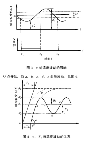 3) 的一段時(shí)間內(nèi), 機(jī)內(nèi)溫度仍繼續(xù)下降, 然后才逐漸上升;而在調(diào)節(jié)器斷開加熱器停止加熱(t2)后的一段時(shí)間內(nèi), 機(jī)內(nèi)溫度仍將繼續(xù)上升, 然后才下降。 因此, 生化培養(yǎng)箱溫度的實(shí)際波動(dòng)范圍將超出設(shè)定的溫度控制范圍 (2ε)。 熱傳遞延時(shí) τ的存在將使溫度波動(dòng)范圍加大, τ越大, 上述影響越大。